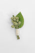 A brunia cluster with greens make this boutonniere a classic. Create the perfect look to finish off that tuxedo or suit with these hand wrapped boutonnieres in satin ribbon.