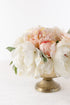 The Sonoma centerpiece is a lush mix of blush pink and white peonies with delicate foliage accents.